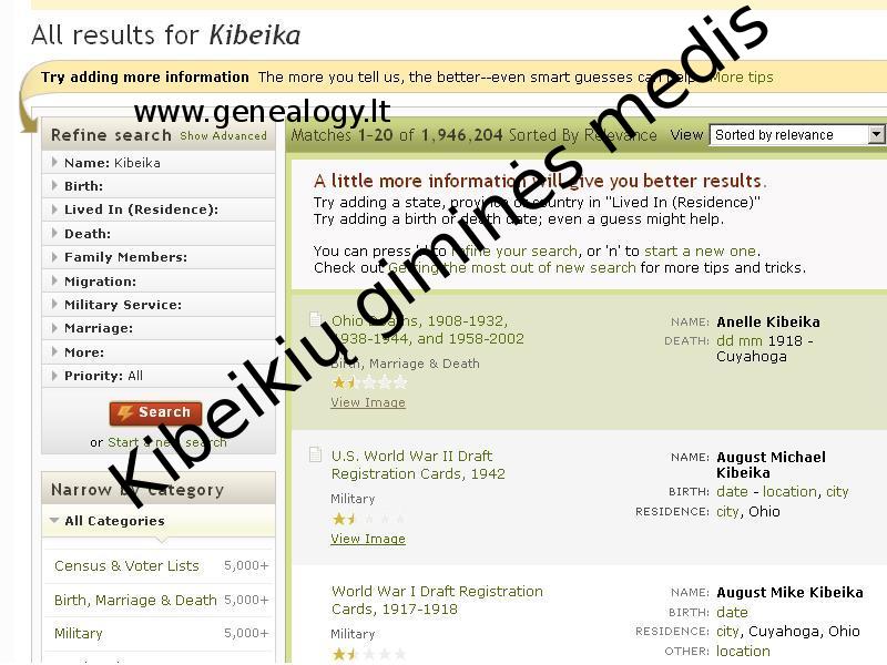 | Anūko santuoka | Adomas Kibeikis (Kebeikso) — Elena Raščiauskaitė — Rodyti šią šeimą 1932 Rugpjūčio 14 (Amžius 79 metai) |